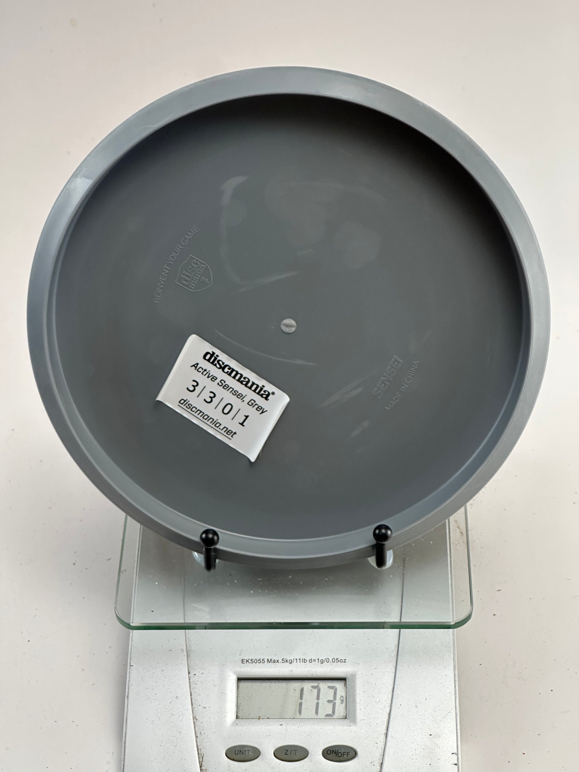 Discmania Sensei in gray Active Base plastic. Standard stamp featuring the Sensei graphic. Ideal for putting and approach shots.