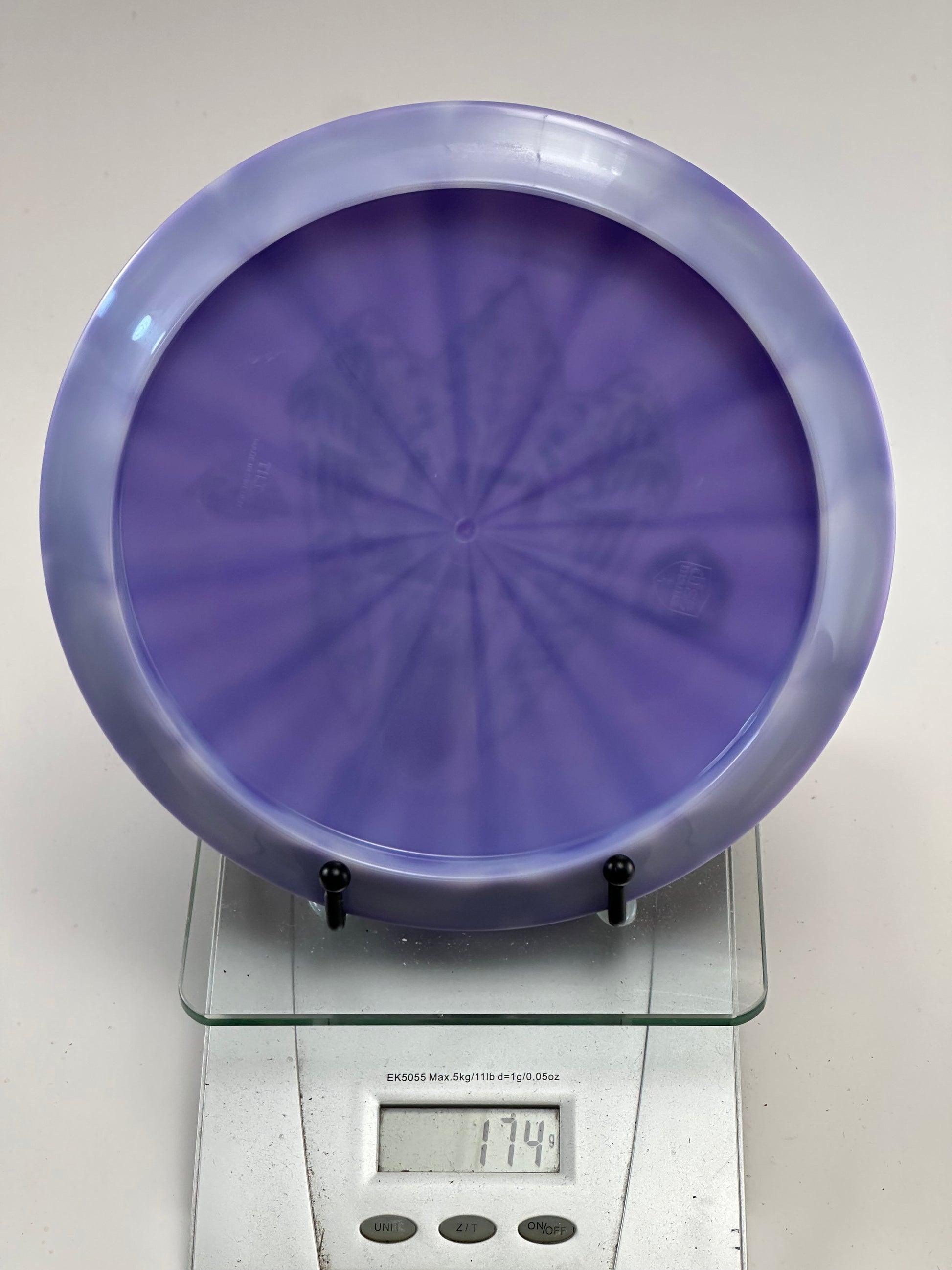 Discmania Tilt in Lux Vapor plastic from the Simon Lizotte Creator Series. Features a mesmerizing purple swirl pattern and a distinctive Full Tilt rocket stamp. Excellent condition and collectible.