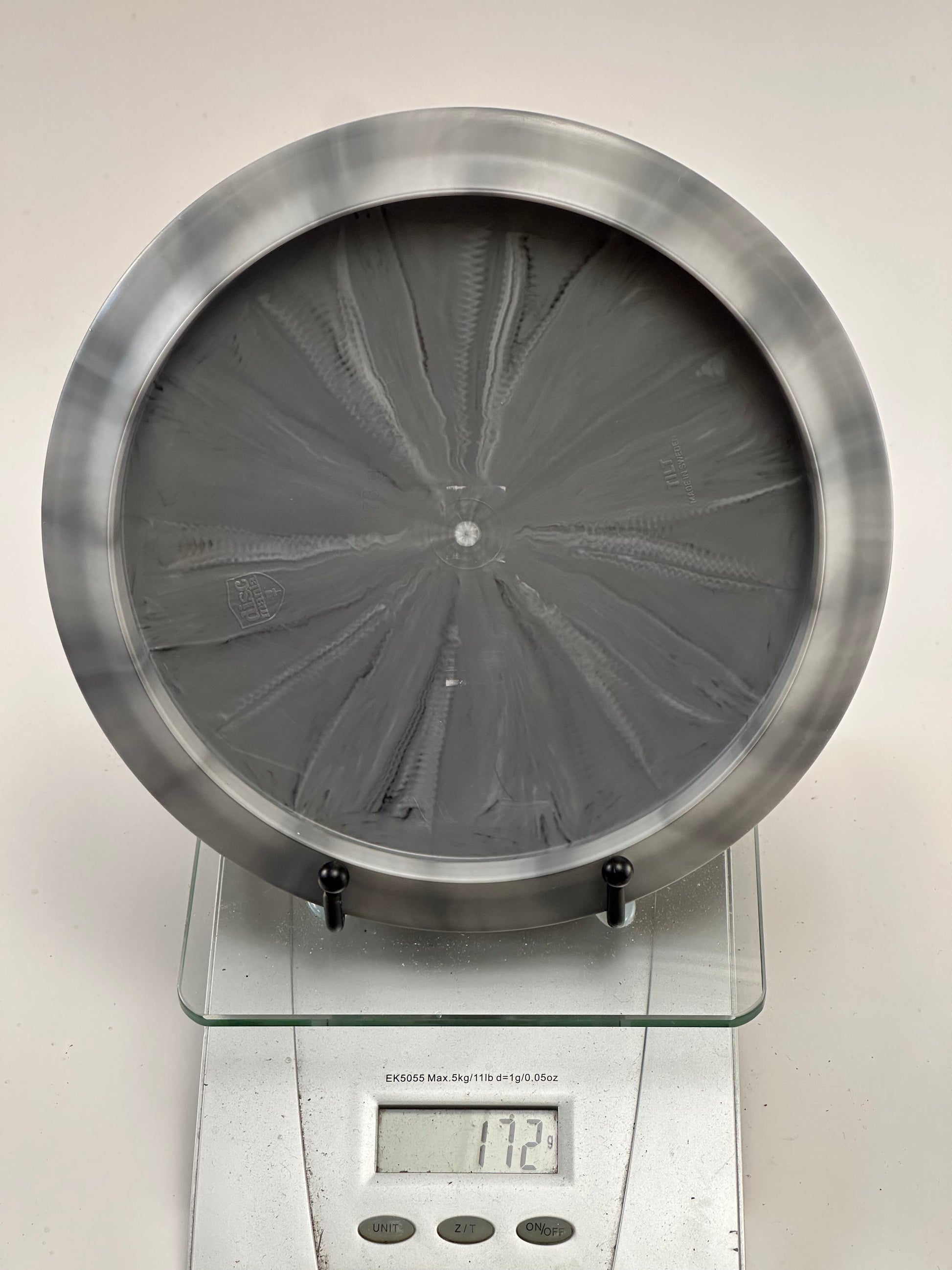 Discmania Tilt in Lux Vapor plastic, featuring the Simon Lizotte Creator Series stamp. The disc has a marbled gray appearance and is in excellent condition.